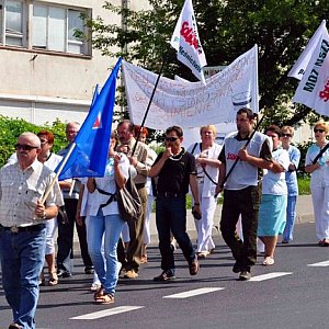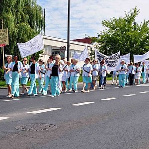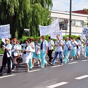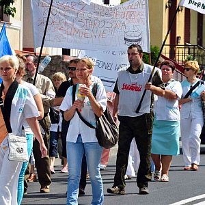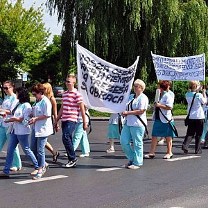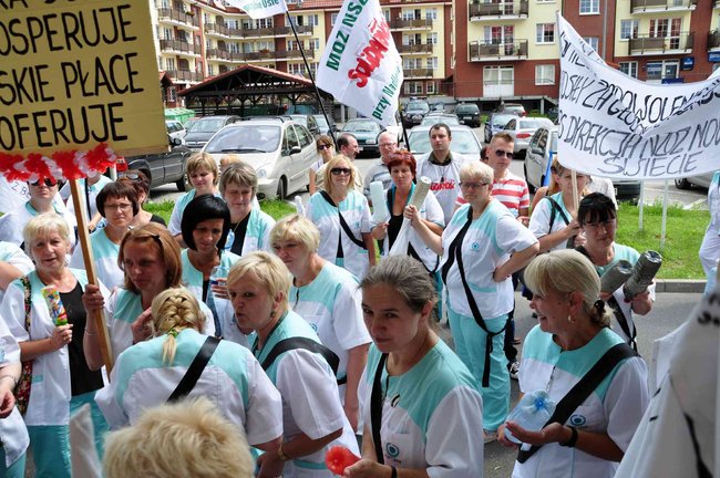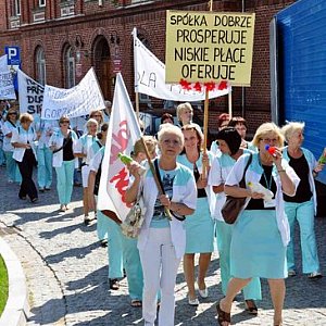 W marszu protestacyjnym wzięło udział kilkadziesiąt osób. Pracownicy Nowego Szpitala, ale też wspierający ich związkowcy z innych branż. Pod eskortą policji i straży miejskiej, grupa wyruszyła spod szpitala, by ulicą Wojska Polskiego dotrzeć przed urząd miejski i dalej ulicą Hallera do budynku starostwa. W drzwiach czekał już sekretarz powiatu, który zaprosił przedstawicielki protestujących na spotkanie z władzami powiatu.