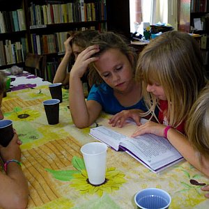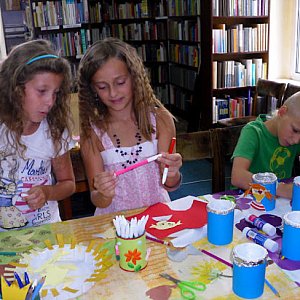 W tradycyjnych „czwartkach” wzięły udział dzieci w wieku 6-10 lat. W trakcie dwugodzinnych spotkań milusińscy uczestniczyli w zajęciach ruchowych, zabawach z chustą animacyjną oraz wykonywali różnorodne przedmioty: „pirat” - pojemnik na kredki, pacynki, krówkę, grę zręcznościową i wiele innych ciekawych zabawek wykonanych najczęściej z surowców wtórnych. Oczywiście nie zabrakło kontaktu z książką, w trakcie lipcowych spotkań dzieci czytały przygody „Pirata Patcha” R. Impey, natomiast w sierpniu rozrywki dostarczała im „Zuźka D. Zołzie” B. Park. Lektura odbywała się oczywiście przy słodkim poczęstunku.