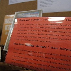 W Świeciu obchody rozpoczęto w poniedziałek. - Jeden z naszych pracowników przebrał się za agenta. W czarnych okularach i ciemnym stroju kontrolował wypożyczane przez czytelników książki i sprawdzał, czy aby na pewno nie wynoszą którejś z niedozwolonych. Każda z osób cierpliwie poddawała się kontroli - opowiada Grabowska. Bibliotekarze postarali się nawet o elementy rodem z filmów kryminalnych. - Jeden czytelnik został niestety zaaresztowany przez Straż Miejską i wyprowadzony na przesłuchanie - wspomina. Oprócz humoru, nie mogło też zabraknąć aspektów edukacyjnych. W specjalnie przygotowanej gablocie można obejrzeć pozycje, których czytanie na przestrzeni lat było zabraniane z powodów religijnych, politycznych, społecznych czy obyczajowych. Wśród nich znajdowały się takie tytuły, jak "Cierpienia młodego Wertera", "Kandyd", a nawet Talmud, Koran czy Biblia. Mimo, że oficjalnie indeks ksiąg zakazanych już nie występuje, cały czas można się spotkać z próbami cenzurowania wydawnictw czy Internetu. - Przykładem może być "Kod da Vinci" czy słynny projekt ACTA - wymienia Iwona Grabowska.