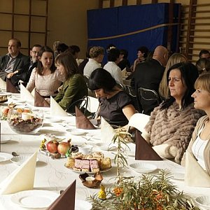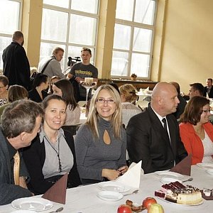 Nauczyciele i pracownicy Zespołu Szkół Ponadgimnazjalnych świętowali Dzień Edukacji Narodowej. Jak co roku, spotkali się w sali gimnastycznej.