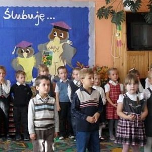 Dzieci zaprezentowały program artystyczny, w którym udowodniły, że zasługują na miano starszaków. Pani dyrektor Iwona Różycka dokonała uroczystego pasowania zaczarowaną kredką i jak za dotknięciem magicznej różdżki nasze dzieci stały się grzecznymi i odpowiedzialnymi zerówkowiczami.