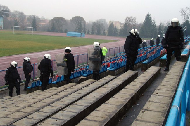 Podczas imprez masowych porządku pilnują pracownicy firm ochroniarskich. Policję wzywa się dopiero wtedy, gdy ochroniarze nie mogą sobie poradzić. Policja nazywa to eskalacją przemocy. Na świeckim stadionie nie dochodziło do tego typu interwencji ale służby porządkowe wolą być przygotowane. - Dlatego policjanci z Wydziału Prewencji zorganizowali ćwiczenia z zakresu przywracania ładu i porządku na obiekcie sportowym w trakcie imprezy masowej – informuje asp. Marek Rydzewski, rzecznik KPP w Świeciu.