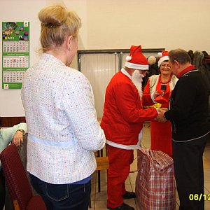 Ale niespodzianka! Na czwartkowe spotkanie seniorów w klubie "WRZOS", niespodziewanie przybył św. Mikołaj. Przyniósł ze sobą pełny worek prezentów. Każdy z uczestników otrzymał słodką paczuszkę.