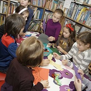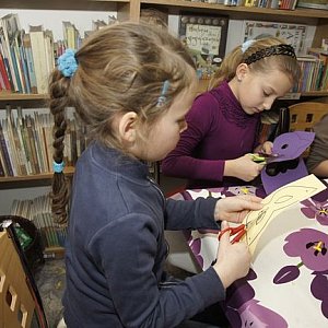 Dzieci spędzające ferie podczas zajęć organizowanych przez Miejską Bibliotekę Publiczną otrzymały dzisiaj niespodziewane zadanie. Musiały wykonać karnawałowe maski.