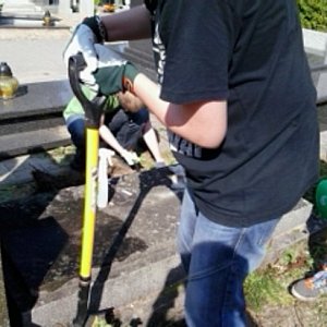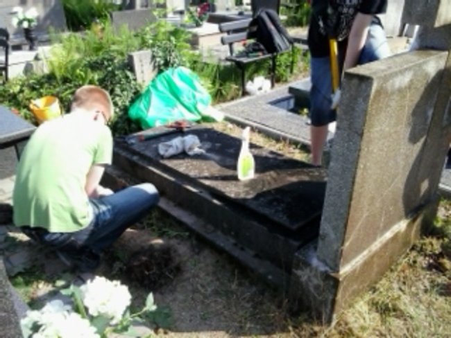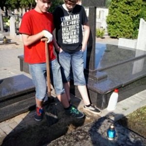 W słoneczne popołudnie 21 czerwca, uzbrojona w zmiotki, szpachle, grabie, łopatę i preparaty do czyszczenia nagrobków, grupa ze Szkół Katolickich w Świeciu pojawiła sie na cmentarzu przy ul. Sienkiewicza przy miejscu wiecznego spoczynku Januarego Janiszewskiego. .