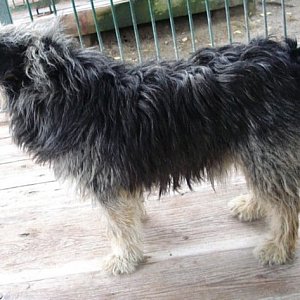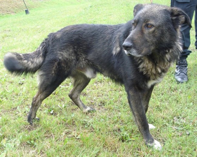 Gustaw trafił do punktu z Terespola Pomorskiego. Na początku był bardzo wycofany. Nie pozwalał się dotknąć. Nie wychodził na spacery. Bał się człowieka. Prawdopodobnie był ofiarą przemocy. Dziś wychodzi na spacery. Pozwala na czesanie i głaskanie. Nadal jest wycofany. Wolontariusze pracują z nim.