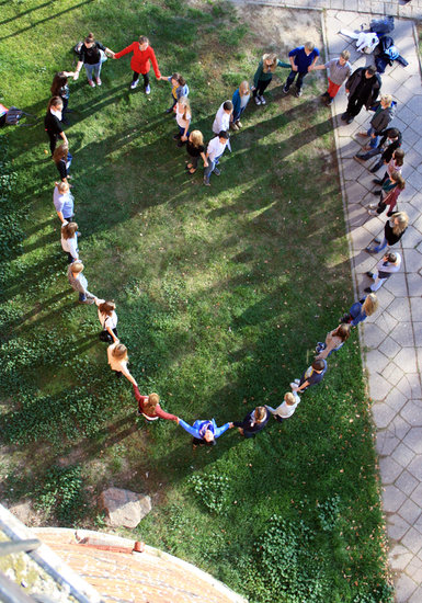 Bardzo serdecznie młodzi Niemcy i gimnazjaliści z Dwójki zostali przyjęci przez Burmistrza Świecia p. Tadeusza Pogodę. Przybliżył on historię naszego miasta, zaprezentował sukcesy nowoczesnego Świecia. O tym, że świecianie są dziedzicami świetnej przeszłości, a równocześnie żyją w nowoczesnym mieście przekonali się nasi goście podczas zwiedzania. Obejrzeli zrewitalizowany rynek, i śródmieście, a następnie podziwiali jesienną panoramę z wieży zamkowej. Na pamiątkę więzów koleżeństwa i przyjaźni utworzyli u stóp zamku wielkie serce.