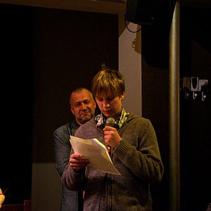 18 października odbył się wcześniej wspomniany wieczorek autorski, na którym mogliśmy spotkać poetów takich jak: Ewę Miłek, Andrzeja Faca, Alicję Knop, Barbarę Piórkowską, Aleksandrę M. Pierzyńską. Autorzy czytali swoje wiersze w oryginalnej oprawie muzycznej. Oprócz poezji XXI, wieku mogliśmy usłyszeć klasykę liryki polskiej np. „Pieśń” Jana Kochanowskiego, Inwokację z „Pana Tadeusza” Adama Mickiewicza oraz „W malinowym chruśniaku” Bolesława Leśmiana. Spektakl słowno-muzyczny odciągnął nas od zabieganej, szarej rzeczywistości i pozwolił przenieść się w świat poezji. Na zakończenie wieczoru rozstrzygnięto konkurs Ukryte Słowa. Przyznano trzy pierwsze miejsca, jedno z nich zdobyła nasza absolwentka Beata Kwaśniewska, a kolejne Kajetan Biniecki z klasy 2 a KG, który należy do naszego Koła Polonistycznego.