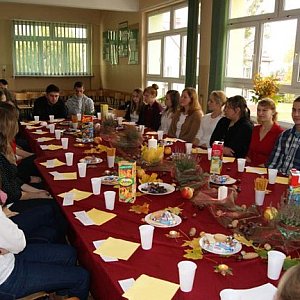 Dzięki paniom pedagog – Agnieszce Żurek i Ewelinie Gęsickiej, które zajęły się przygotowaniami, spotkanie przebiegało w wesołym nastroju, przy pięknie udekorowanym stole i słodkim poczęstunku.