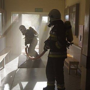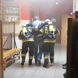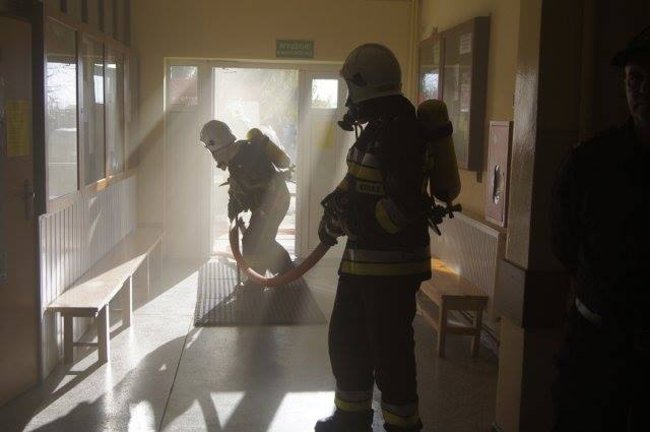 Kłęby dymu wypełniające szkolne korytarze utrudniały ewakuację. Strażacy wynieśli jednego z uczniów, zlokalizowali i stłumili ogień. Na szczęście to tylko ćwiczenia.