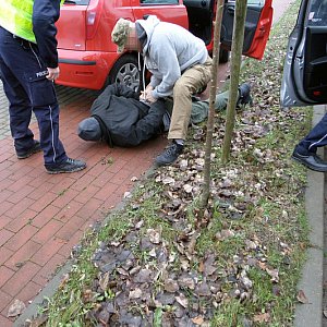Jednocześnie trwa pościg za zamachowcem, który wkrótce zostaje zatrzymany. Sprawdzony przez pirotechników ładunek okazuje się atrapą.