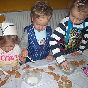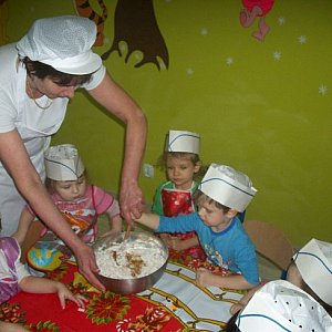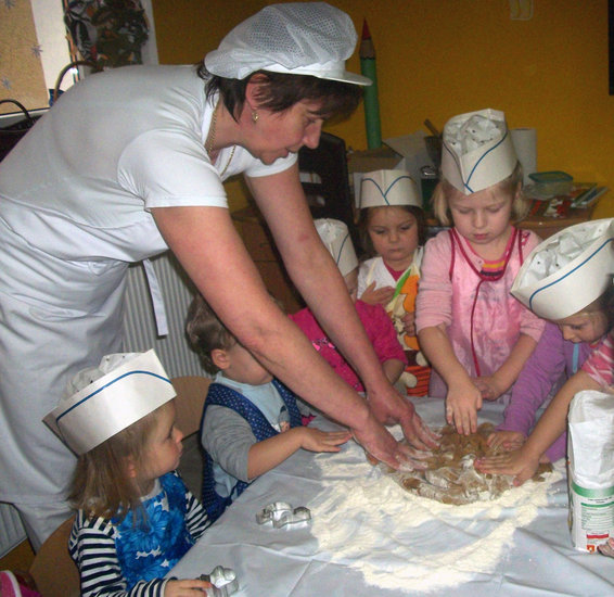 Był to dzień pełen wrażeń. Na początku przedszkolaki ubrane w fartuszki i czapeczki kucharskie z wielkim zaangażowaniem przygotowały ciasto. Dzieci same wbijały jajka, wsypywały mąkę i ugniatały ciasto. Następnie pięknie udekorowały swoje ciasteczka. Było przy tym mnóstwo zabawy i śmiechu. Gdy pierniczki były już gotowe przyszedł czas na skosztowanie wypieków. Pierniczki były przepyszne a w całym przedszkolu unosił się zapach świąt. Przedszkolaki z „Kangurka” mają nadzieję, że kucharze z Restauracji „Stylowa” jeszcze ich odwiedzą i wspólnie przygotują wiele pysznych potraw.