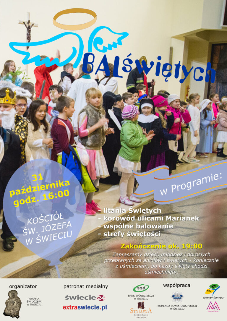 – Obchodząc uroczystość Wszystkich Świętych, Kościół w tym dniu oddaje cześć tym wszystkim, którzy już weszli do chwały niebieskiej, a wiernym pielgrzymującym jeszcze na ziemi wskazuje drogę, która ma zaprowadzić ich do świętości. Przypomina nam również prawdę o naszej wspólnocie ze Świętymi, którzy otaczają nas opieką. Poprzez nich chcemy uwielbić samego Boga, który „jest źródłem wszelkiej świętości”. Bal Świętych to doskonała okazja na to by uczcić wszystkich świętych, ale także czas na zabawę, tańce, występy i modlitwę – informują organizatorzy.