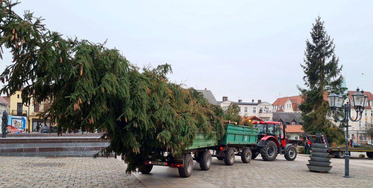 Wczoraj montowana była choinka naprzeciwko dworca PKS. Dziś jest ustawiana żywa choinka na Dużym Rynku.