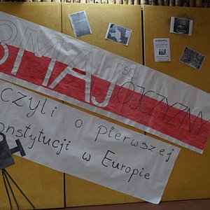 W przedstawieniu pt. „3maj się ojczyzny” opowiedzieli o okolicznościach powstania pierwszej w Europie konstytucji oraz jej konsekwencjach i bohaterach Sejmu Czteroletniego, ale też o opozycjonistach. Tym razem uczniowie wykorzystali konwencję castingu do filmu o konstytucji i wcielili się w rolę reżysera, asystentki, producentki, konsultanta naukowego, czuwającego nad prawdą dziejową oraz w role bohaterów Ustawy Zasadniczej. Młodzi aktorzy musieli się także zmierzyć z trudnymi tekstami historycznymi, nie tylko pamiętając o wszystkich datach i nazwiskach, lecz przede wszystkim wypowiadać je z łatwością, przystępnie dla widza! Widzowie nagrodzili ich wysiłki gromkimi brawami.