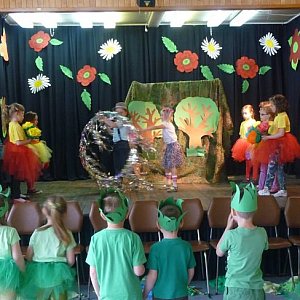 W rolę aktorów wcieliły się dzieci czteroletnie i sześcioletnie wraz z nauczycielkami. Przedstawienie łączyło elementy teatru żywego aktora, pantomimy z teatrzykiem kukiełkowym. Na widowni zasiadły dzieci z Przedszkola nr 9 „Pod klonem”, Przedszkola nr 2 „Słoneczko”, Przedszkola nr 6 „Bajka” oraz dzieci z Zespołu Szkół Specjalnych numer 1.
