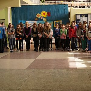 Dla mieszkańców  naszego miasta opracowaliśmy ulotki i ankietę, sprawdzającą wiedzę na temat UE, PE, ordynacji wyborczej oraz chęć, bądź niechęć uczestnictwa w wyborach z uzasadnieniem. Ponieważ ankietowanie wciąż trwa o wynikach jeszcze napiszemy. W piątek zorganizowaliśmy apel informacyjno – organizacyjny dla całej społeczności szkolnej. Nie mogło zabraknąć Hymnu Europejskiego oraz najważniejszych informacji o Unii i Parlamencie Europejskim. Przedstawiliśmy cząstkowe wyniki sondażu i omówiliśmy ordynację wyborczą. Pani dyrektor wręczyła zwycięzcom dyplomy i nagrody w konkursie międzyklasowym „Co wiemy o Unii, Parlamencie i wyborach w Polsce”. Każdy uczeń otrzymał naszą ulotkę, by również rodzicom zaproponować skorzystanie z latarnika wyborczego i zachęcić ich do udziału w wyborach 25 maja.