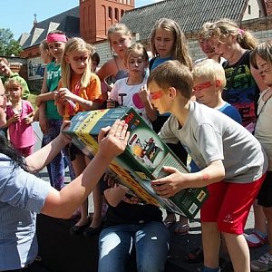 Międzynarodowy Dzień Dziecka to doskonała okazja do przygotowania imprez poświęconych dzieciom młodszym i tym już nieco doroślejszym. Społeczność Gimnazjum nr 2 zaprosiła z tej właśnie okazji dzieci i młodzież wraz z rodzicami i krewnymi do wspólnej zabawy podczas Festynu Sportowo- Rodzinnego. W sobotni poranek na boisko przybyli nie tylko uczniowie szkoły, lecz również dzieci ze szkół podstawowych i przedszkoli wraz z rodzicami. Dla wszystkich przygotowano moc atrakcji. Do zabawy rozgrzała trenerka fitness, pani Agnieszka, która zatańczyła wspólnie z uczestnikami kilka tańców zumby. Liczyły się chęci, a nie tylko umiejętności. Z największym zapałem tańczyli najmłodsi. Potem przyszła kolej na występy artystyczne. Publiczność podziwiała zabawne gadki „Świeckich Gzubów”, kociewskiego zespołu działającego w Szkole Podstawowej nr 7. Bardzo podobały się tańce ludowe w jego wykonaniu . Można też było rozwinąć swoją sprawność . Dzieci z zapałem toczyły się w wielkim dmuchanym walcu. Poczucie humoru i harmonię ruchów trenowano w spodenkach dla „trzech” oraz na nartach dla „czterech” lub na szczudłach. Poczucie równowagi zaś doskonalono podczas wspinaczki po skrzynkach. Panowie, ci mali i dorośli rozwijali celność, strzelając z łuku i karabinka, a ci najmniejsi rzucali woreczkami do tarczy. Zabawy przygotowano także dla maluszków, z chęcią poddawały się one malowaniu twarzy w wymarzone wzory, brały udział w konkursie rysowania kredą wymarzonych wakacji i bakowych zgadywankach.