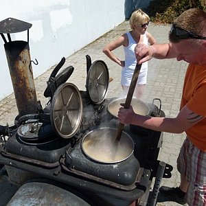 Podczas licznych konkurencji i pokazów można było zaspokoić głód przy wiejskim stole, zajadając swojski chleb ze smacznym smalcem i ogórkiem kiszonym, oraz przy pysznej grochówce i kiełbaskach z grilla. Na amatorów słodyczy czekało stoisko z domowym ciastem, pączkami i kawą.