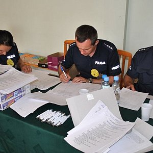 Ilość uczestników przeszła najśmielsze oczekiwania organizatorów konkursu. 57 uczniów z 19 szkół naszego powiatu rywalizowało odpowiadając na 20 pytań testowych z zakresy ruchu drogowego. „Adam wybiera się na wycieczkę rowerową, co powinien założyć na głowę” To jedno z pytań zawartych w teście.