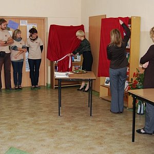 Pierwszym punktem dzisiejszych uroczystości było otwarcie kolejnych półek bookcrossingowych. Tym razem miejsca do samodzielnego, bezpłatnego wymieniania się książkami otwarto w Urzędzie Miasta, Zespole Szkół Ponadgimnazjalnych i Ośrodku Kultury, Sportu i Rekreacji. – Ostatnio nie mam zbyt dużo czasu na czytanie, niemniej jednak dawniej pochłaniałem książki w ogromnych ilościach – powiedział podczas odsłonięcia półki Romuald Dworakowski, szef OKSiRu. – Od zawsze byłem fanem trylogii Sienkiewicza, niestety z powodu braku czasu ograniczam się jedynie do czytania projektów ustaw – śmiał się Jerzy Wójcik, przewodniczący Rady Miejskiej. Przypomnijmy, że półki bookcrossingowe znajdują się również w Ośrodku Pomocy Społecznej, Miejsko-Gminnej Przychodni i oczywiście w murach biblioteki.