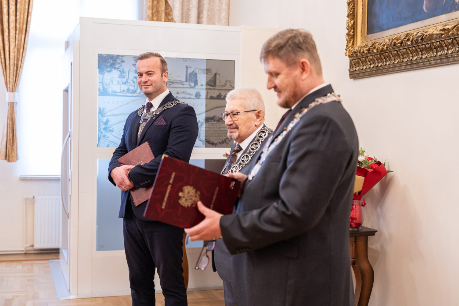 Uroczystość wręczenia Medali za Długoletnie Pożycie Małżeńskie odbyła się w podniosłej atmosferze. Obok Burmistrza, w wydarzeniu uczestniczyli również Kierownik Urzędu Stanu Cywilnego Andrzej Krawański oraz Przewodniczący Rady Miejskiej w Świeciu Jerzy Wójcik.