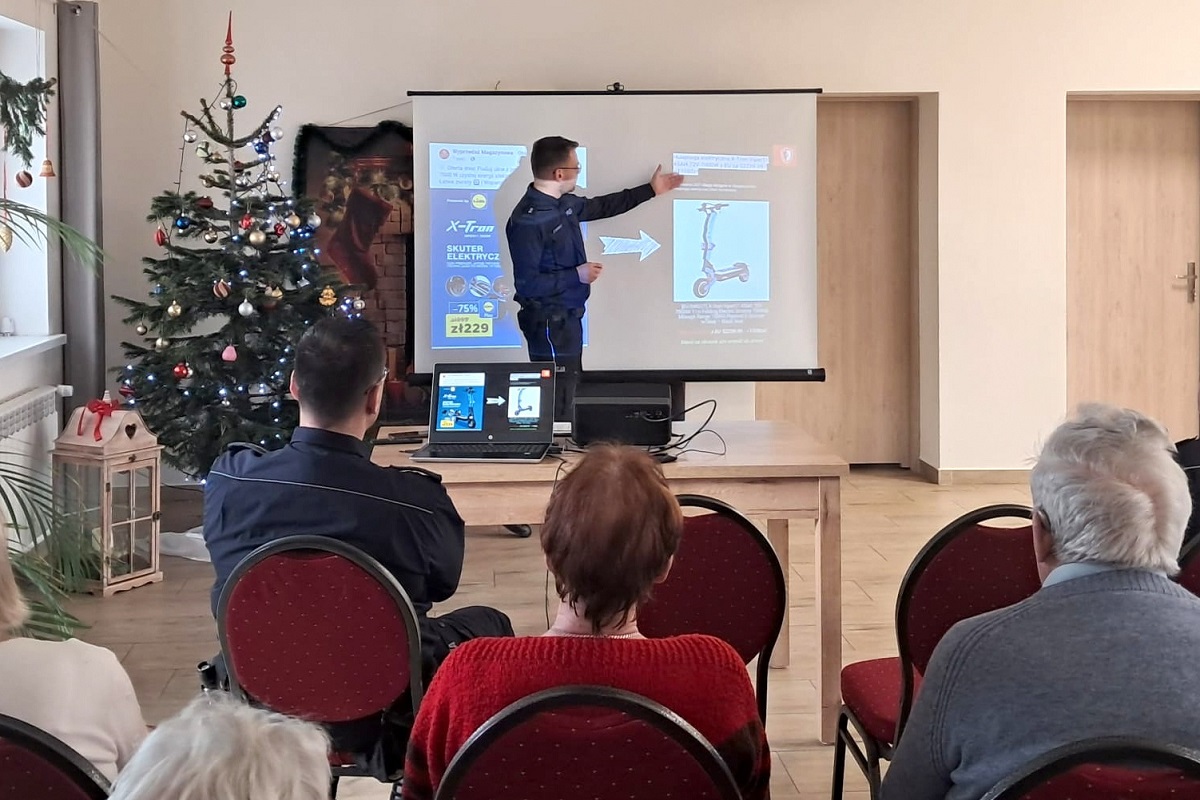 Najważniejszą częścią spotkania było omówienie najczęściej spotykanych oszustw skierowanych przeciwko osobom starszym: „na wnuczka”, „na pracownika banku” czy „na fałszywego policjanta”. Zajęli się tym funkcjonariusze z wydziału do walki z przestępstwami gospodarczymi, kom. Łukasz Elszkowski i mł. asp. Joanna Kur.