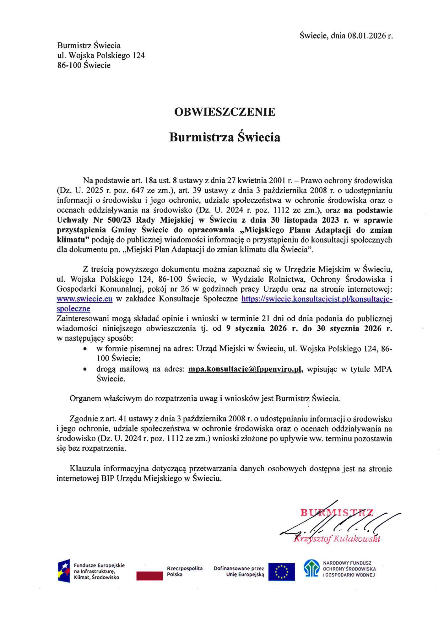 Ruszyły konsultacje Miejskiego Planu Adaptacji do zmian klimatu w Świeciu