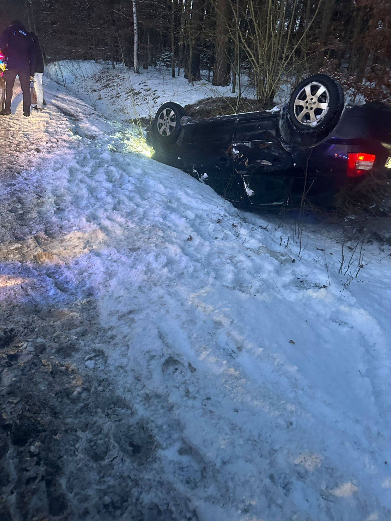 Pierwsze zgłoszenie wpłynęło do strażaków w Świeciu o godzinie 16:01. Na trasę natychmiast ruszyły dwa zastępy z OSP Osie. Po przyjeździe na miejsce ratownicy zastali samochód osobowy, który wypadł z jezdni i dachował.
