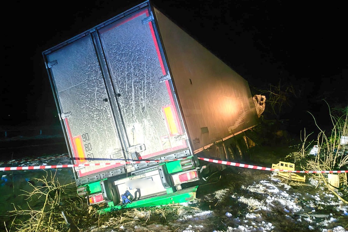 Zaledwie godzinę później i kilkaset metrów dalej, w niemal identycznych okolicznościach, trasę zakończył 38-latek z powiatu brodnickiego, który prowadził ciężarową Scanię.
