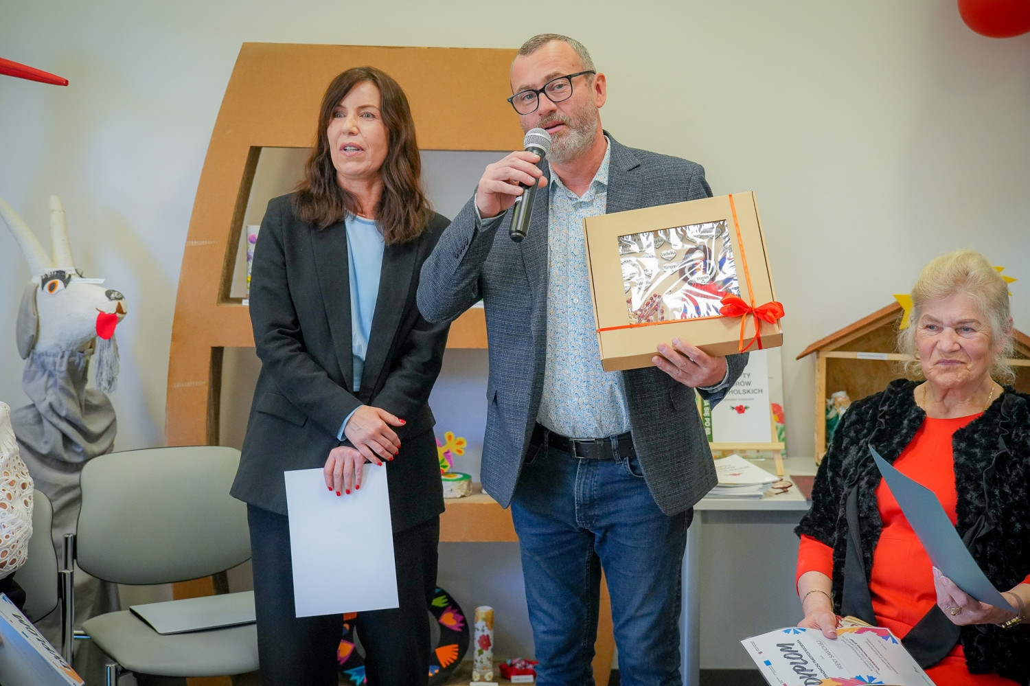 Na spotkaniu gościła poseł Iwona Karolewska z drobnymi podarunkami, a biblioteka przygotowała dla twórców specjalne podziękowania w postaci książek.