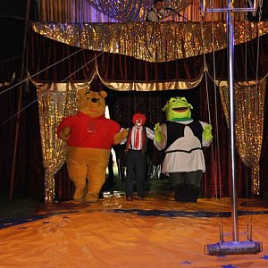 Krótkie przerwy pomiędzy numerami, potrzebne na zmianę przyrządów, zagospodarowywał clown Picaro, który nie tylko bawił publiczność swoimi gagami, ale namiętnie wyciągał z widowni dzieci i dorosłych i wciągał ich do zabawy.