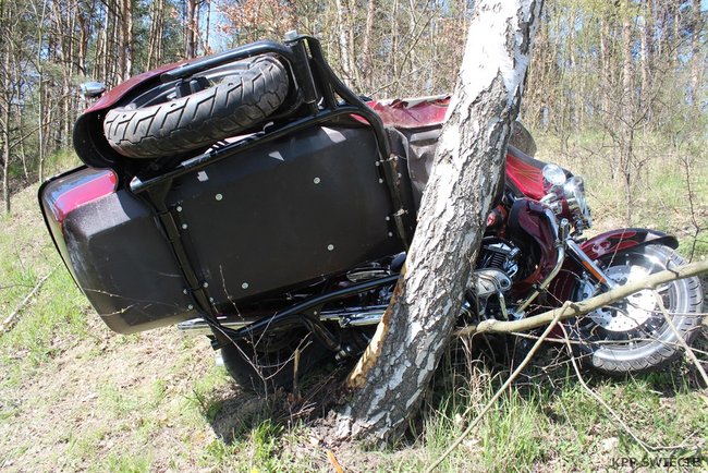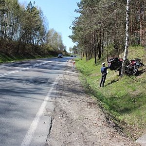 Wczoraj (22 kwietnia) o godzinie 13:25 w Terespolu Pomorskim doszło do niebezpiecznego wypadku drogowego. Ze wstępnych ustaleń policjantów wynika, że kierujący motocyklem 52-letni mieszkaniec Rzeszowa po wyjeździe z łuku drogi, na prostym odcinku nie dostosował prędkości do warunków na drodze i zjechał na pobocze uderzając w przydrożne drzewo. Kierujący harleyem z obrażeniami ciała trafił do szpitala. Był trzeźwy. Prowadzone w tej sprawie dochodzenie wyjaśni okoliczności i przyczyny zaistniałego wypadku drogowego.