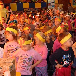 Dzieci z każdej grupy miały okazję pochwalić się znajomością wierszyków dotyczących zdrowia, które to pięknie recytowały i inscenizowały. Nauczycielki zaprezentowały program artystyczny promujący zdrowy styl życia, zdrowe odżywianie i aktywność ruchową. „ Witaminki” zachęcały dzieci do jedzenia owoców i warzyw oraz zapraszały do podskoków, wymachów i wesołych pląsów.