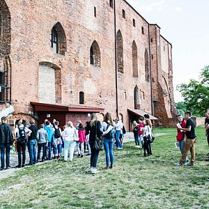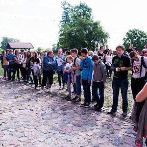 Bieg rozpoczął się krótką odprawą na dziecińcu Zamku o godzinie 10, później nastąpiło podzielenie na grupy i uczestniczy ruszyli w poszukiwaniu zabytków.