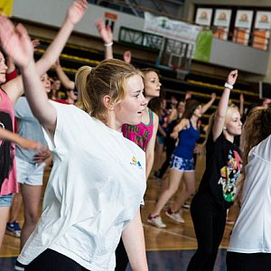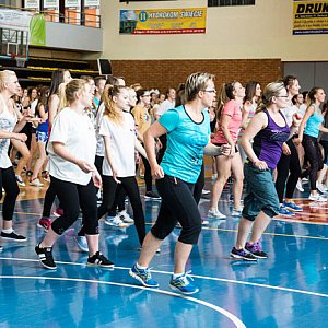 Maraton miał odbyć się w szkole, ale duża liczba chętnych i deszczowa pogoda zmusiły organizatorów do przeniesienia akcji do hali widowiskowo – sportowej. Tam główny prowadzący Paweł Paczyński poprowadził zajęcia w rytm muzyki puszczanej przez Dj Hors’a.