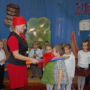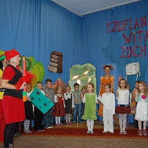 Dzień 13.10.2011 r. zaczął się całkiem zwyczajnie, i taki by pozostał, gdyby nie uroczystość, którą zaplanowaliśmy na godzinę 9.30. O tej porze dzieci z grupy Sów przystąpiły do egzaminu dojrzałości 6-latka, by stać się 100% zuchami. Wydarzenia rozgrywały się na leśnej polanie, w świecie krasnoludków – Szuflandii. Każdy, kto chciał zostać uczniem klasy „0”, musiał wykonać wiele trudnych zadań. Kandydaci na Zucha wykazywali się wiedzą na temat swojej ojczyzny i miasta Świecia, prezentowali talenty recytatorskie, wokalne i taneczne. A wszystko to działo się pod czujnym okiem Króla Szuflandii – krasnala Papcia (w tej roli wystąpiła p. dyrektor Danuta Kuzimska). Egzaminatorami byli wróżka Pandora i krasnoludek Omnibusek (nauczycielki: Weronika Nowakowska i Ewa Szydłowska). Mimo przeszkód stawianych przez wróżkę Pandorę, wszystkie dzieci zdały egzamin śpiewająco, a na ich twarzach zagościł uśmiech. Wiele emocji wzbudziły prezenty, które Sowy, już jako ZUCHY, odebrały z rąk krasnoludkowej braci.