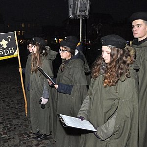 Kilkadziesiąt osób przyszło wczoraj na Duży Rynek aby zabrać do domów Betlejemskie Światło Pokoju.