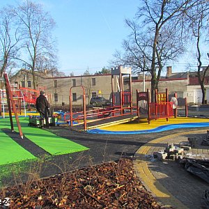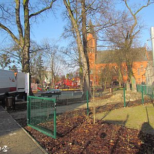 Plac zabaw na ul. Ogrodowej w Świeciu robi się coraz ładniejszy. Jest to zasługa nie tylko sprzętu rekreacyjnego, który się tam pojawił, lecz także gładkich, żwirowych ścieżek i roślin ozdobnych podsypanych korą drzewną. Wyposażenie placu wskazuje na to, że będzie to świetne miejsce do wypoczynku dla dorosłych i dzieci. Maluchy będą mogły korzystać z huśtawek, piaskownicy i domku do zabawy ze zjeżdżalnią i częścią do wspinaczek. Nieco starsi będą mieli możliwość wypoczywania na ławeczkach, korzystania ze sprzętu sportowego. Na terenie placu pojawiły się też stoliki i krzesła. Obecnie, pracownicy kładą kolorową nawierzchnię syntetyczną. Atutem nowego obiektu jest ładny widok na Kościół pw. Św. Andrzeja Boboli.