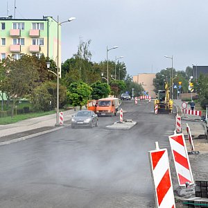 Obecnie samochody przejeżdżają po profilowej warstwie nawierzchni drogowej. Teraz trzeba będzie podnieść wszystkie urządzenia (wpusty, studzienki, zawory) o 4 cm, czyli o grubość warstwy ścieralnej. Najprawdopodobniej ostatnia warstwa zostanie położona jeszcze w tym tygodniu.