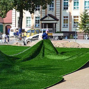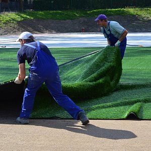 - Nie można było kłaść sztucznej nawierzchni na wilgotne podłoże - mówi Ryszard Sadowski, kierownik wydziału inwestycyjnego Urzędu Miejskiego w Świeciu. - Teraz mieliśmy kilka dni bez deszczu, więc można było przystąpić do układania sztucznej trawy.