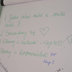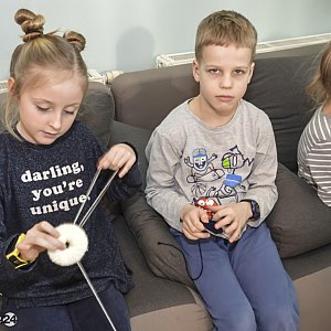 W Pracowni Rozwoju „Wyspa Skarbów” grupa dzieci robiła pompony z których następnie miały powstać łapacze snów. Przed rozpoczęciem zajęć dzieci napisały regulamin, który będzie obowiązywał w pracowni. Każdy z uczestników podpisał się pod regulaminem i zobowiązał się do przestrzegania go.