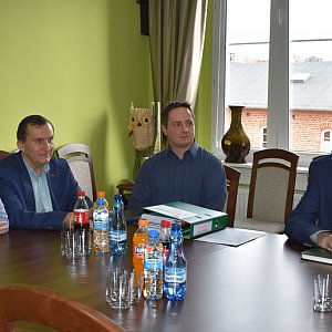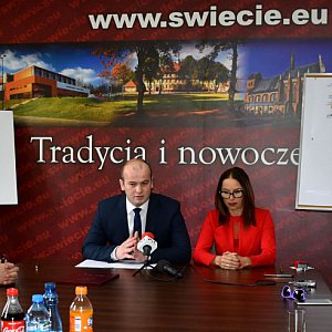 W uroczystym spotkaniu w Urzędzie Miejskim w Świeciu wzięli udział m.in. Krzysztof Kułakowski, Marzenna Rzymek, skarbnik gminy, Waldemar Fura, kierownik Ośrodka Oświaty i Wychowania w Świeciu oraz Jacek Kawski i Janusz Marszałkiewicz, przedstawiciele firmy Solgrud.