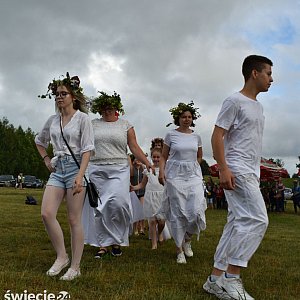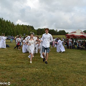 Zachodzące słońce czasami przebijało się przez deszczowe chmury, a kobiety i dziewczęta ubrane na biało, z wiankami na głowach, tańczyły poloneza. To był ładny widok dla oka. Nie zabrakło też czegoś dla ucha i wygłodniałego żołądka. Męski chór „Cecylia” z Bukowca wykonał dla słuchaczy kilka utworów, a panie z kół gospodyń wiejskich serwowały lokalne przysmaki. Całość dopełniały piski rozbawionych dzieci. W tle młodzi mężczyźni grali w siatkówkę, a odporni na chłód śmiałkowie pływali w jeziorze. To był obraz letniego wieczoru na wsi, kiedy to jej mieszkańcy po prostu cieszyli się życiem.
