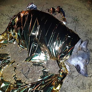 * Godzina 15:30 czekamy na specjalistyczny transport. Po podaniu leków wilk został przykryty przez strażników leśnych kocem termicznym. Komendant Krzysztof Kortas poinformował Panią Sabinę Nowak, że w takim wypadku patrol Straży Leśnej pozostanie przy wilku aż do przyjazdu osób które przewiozą go do lecznicy.