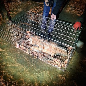* Godzina 17:50 we wskazane miejsce przyjechał Pan Jerzy Napierała członek Stowarzyszenia dla Natury „Wilk" ze specjalną klatką do przewozu zwierząt. Pobrał próbki DNA z pyska i próbkę sierści.