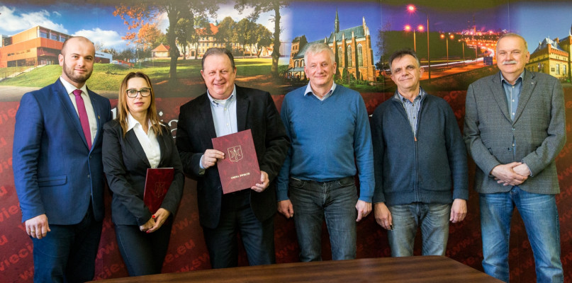 W poniedziałek w podpisaniu umowy w Urzędzie Miejskim w Świeciu uczestniczyli Krzysztof Kułakowski, burmistrz Świecia, Marzenna Rzymek, skarbnik gminy, Zbigniew Jasiecki, prezes Kontbudu, Zbigniew Palicki, członek zarządu, Dariusz Sobek, inspektor nadzoru i Ryszard Sadowski, kierownik Wydziału Inwestycyjnego Urzędu Miejskiego w Świeciu.