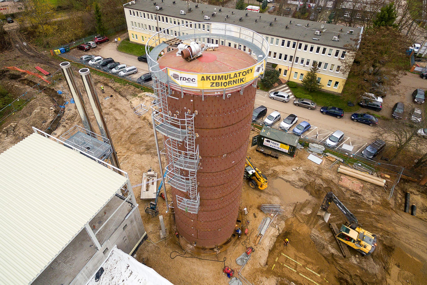 Drugim spektakularnym projektem, w który zaangażowana jest firma z Drzycimia, jest budowa największego w Europie akumulatora ciepła. Obiekt powstanie przy Elektrociepłowni Żerań w Warszawie, a jego parametry mówią same za siebie: 63 metry wysokości części walcowej, 36 metrów średnicy, pojemność 61 tys. m³.