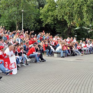 W niedzielę po raz drugi świecka strefa kibica wypełniła się kibicami. Wielu było ubranych w biało-czerwone koszulki, bluzy, szaliki. Na trybunach pojawiły się pomalowane twarze i kilka flag.