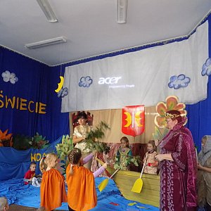 Z kolei 26 października maluchy wybrały się w podróż do przeszłości. Na przygotowanej, scenie pojawili się aktorzy, którzy przestawili inscenizację legendy o powstaniu herbu Świecia. Występ wywołał spory aplauz wśród oglądających. Po przestawieniu wszystkie dzieci mogły potwierdzić swoją sprawność  i  umiejętności  podczas zabaw. Każdy uczestnik spotkania przechodził  przez wąską kładkę na Wdzie, czy też łowił ryby w Wiśle. Spotkanie zakończyło wspólne odśpiewanie hymnu przedszkola.